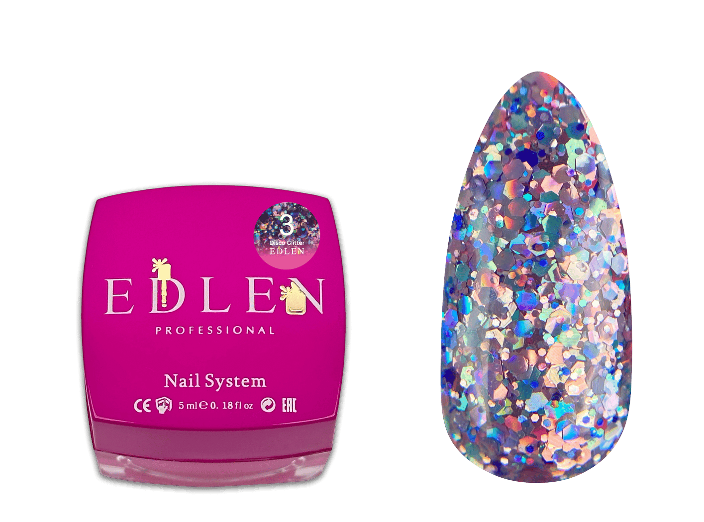 Disco Glitter Edlen, yüksek yoğunluklu ince ve iri ışıltılı partiküller içeren özel gellak koleksiyonudur. Her manikürü partinin merkezine taşır! Hem yaratıcı tasarımlar hem de gösterişli nail art uygulamaları için mükemmeldir. Orta kıvamıyla rahat uygulama imkânı sunar ve kolayca temizlenebilir.