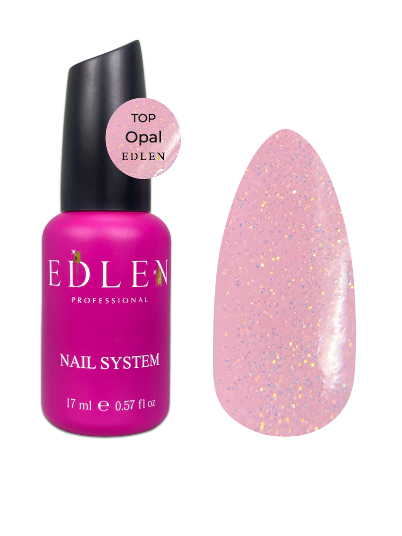 Top Opal Edlen, tırnaklarınıza opal ışıltısı ve şeffaf, göz alıcı bir parlaklık katar. No wipe (temizleme gerektirmeyen) formülü ve dengeli dağılan simleri sayesinde ekstra işlem yapmadan profesyonel görünüm elde edebilirsiniz. Tüm müşteriler için vazgeçilmez bir opal top coat!